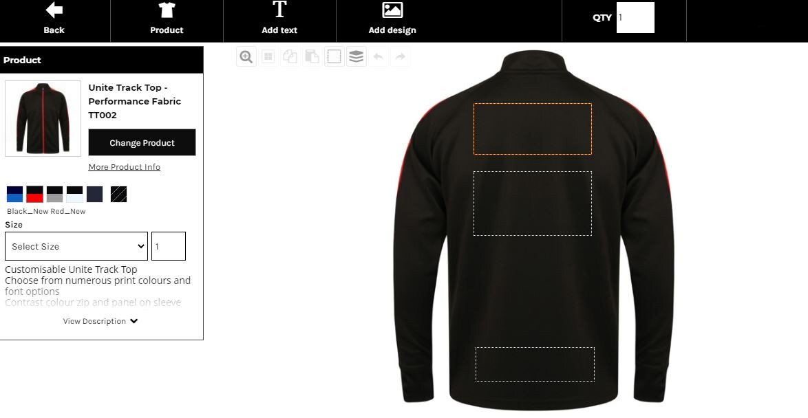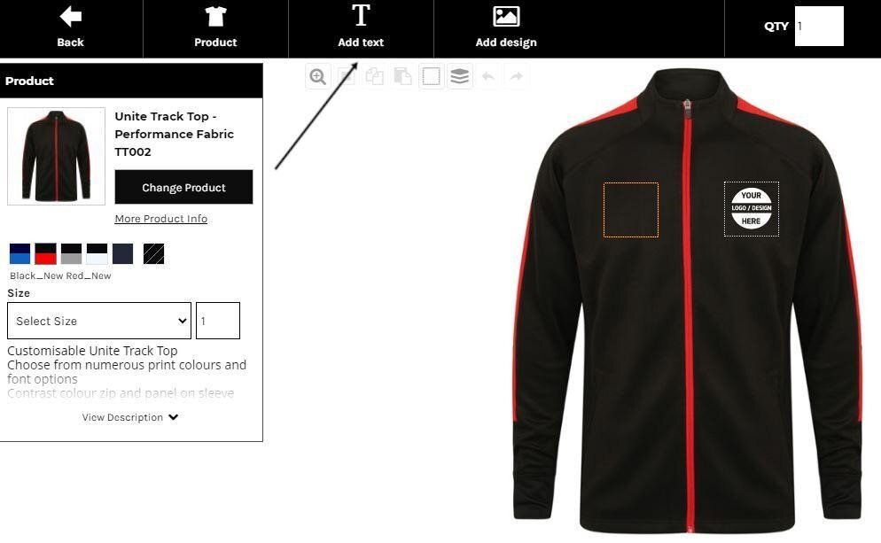 First things first, choose the appropriate products by browsing the garments available in this category. Click on the item/s of your choice and then ‘customise this product’ For this quick guide, we are using our popular Unite Track Top.